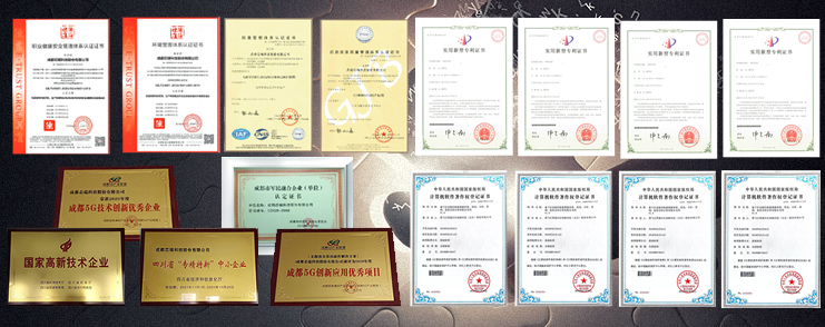 国家高新技术企业,四川省"专精特新"中小企业,成都5G创新应用优秀项目,成都5G技术创新优秀企业,成都市军民融合企业,成都5G创新应用优秀项目,2022可持续发展奖(瑞典能源署颁发),2022最佳节能奖(欧洲能源协会颁发),CE、ROHS、FCC、FDA、SGS、TUV等多项国际认证…
